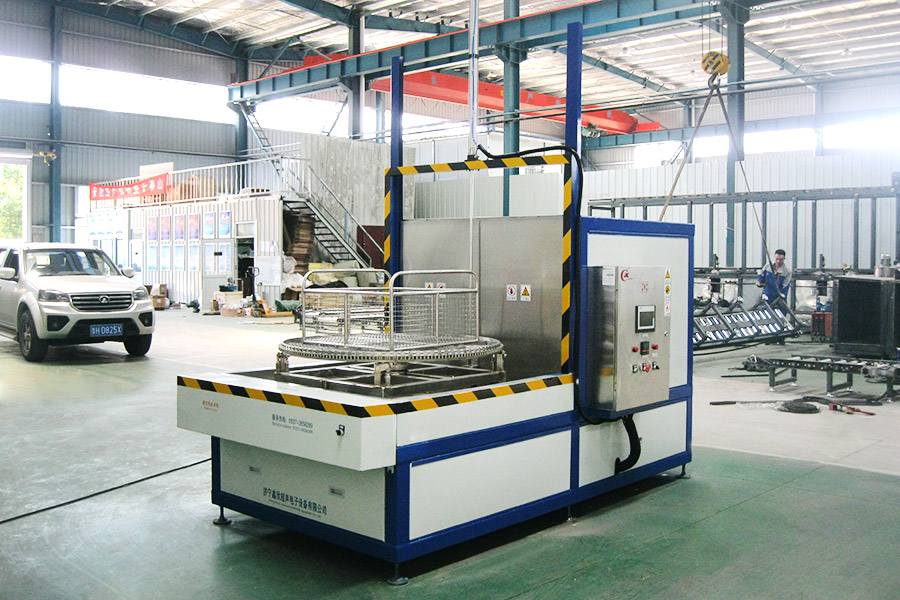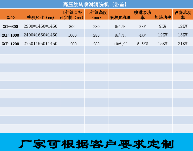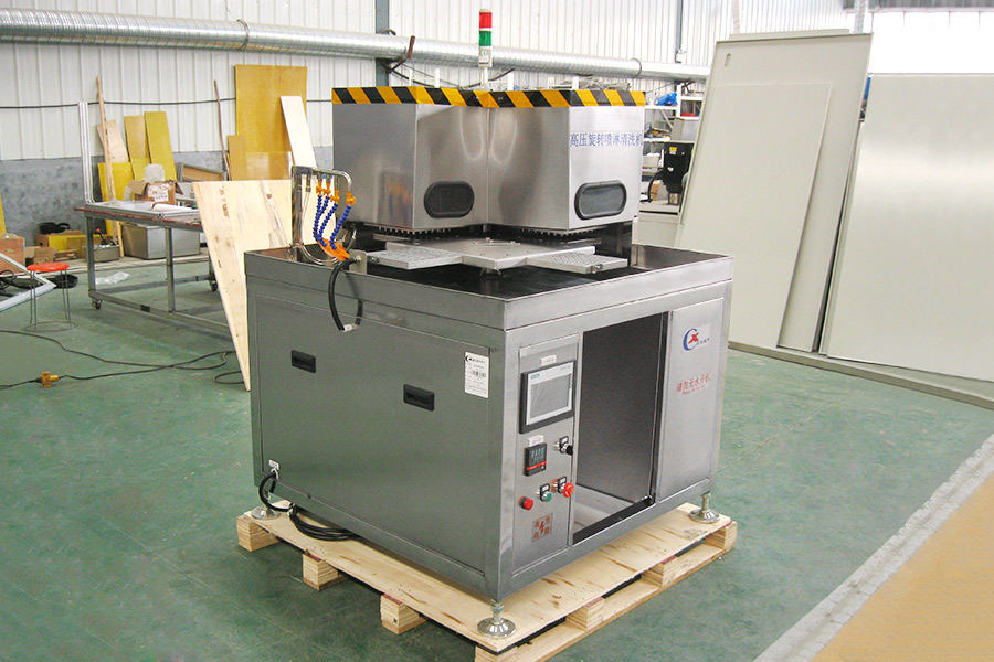 高壓噴淋清洗機利用高溫熱水在急速旋轉時產生的高壓射流和離心原理使樣工件內外表面污垢迅速剝落,達到徹 底清洗的目的??刂撇糠植捎每删幊绦蚩刂破?,自動化程度高。是一種減輕工作人員勞動強 度,高 效節能,安 全環保的清洗設備。