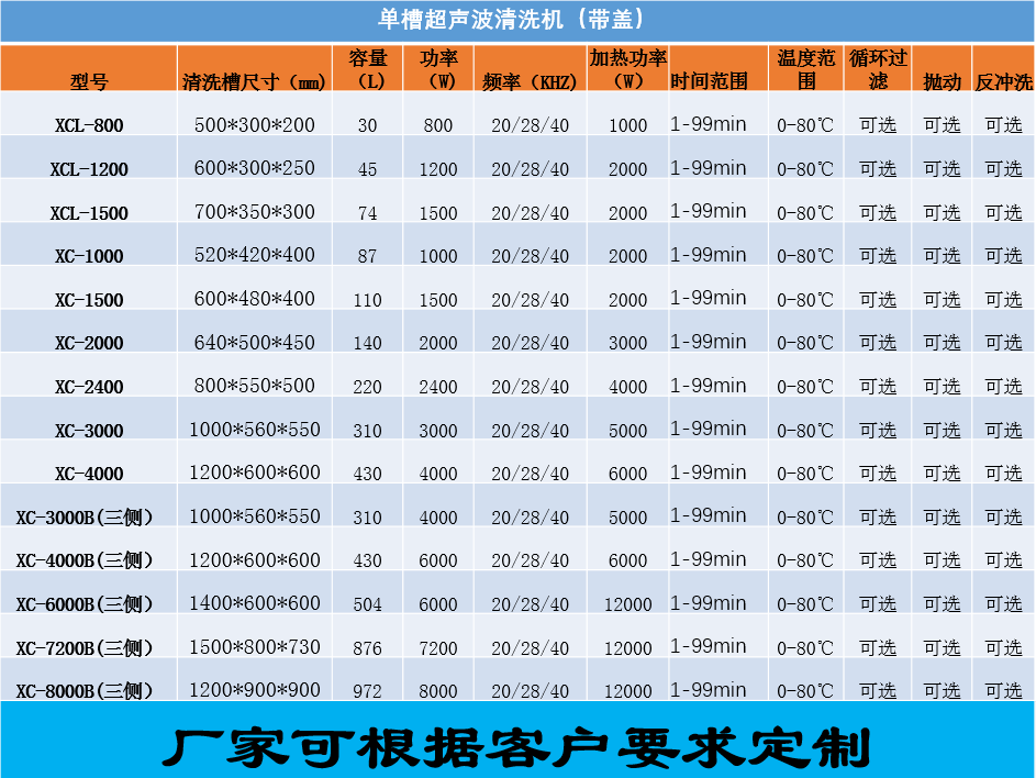 Customer satisfaction is our pursuit槽式超聲波清洗機,可分為單槽、雙槽、三槽或更多清洗槽組成的清洗系統。可滿足粗洗、精洗、漂洗、烘干等更多的清洗工藝要求,保證產品的清潔度。