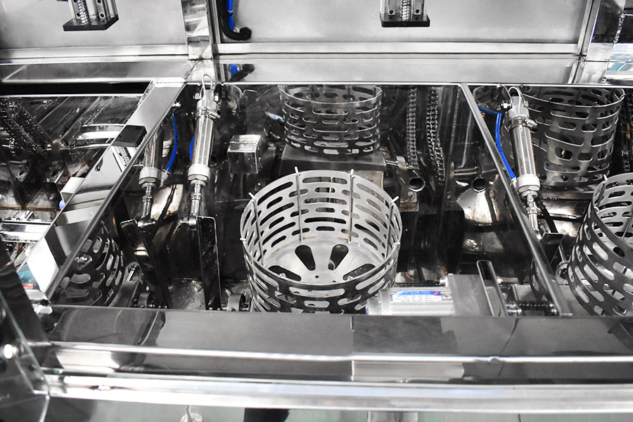 該設(shè)備有自動(dòng)上下料及轉(zhuǎn)角系統(tǒng)、超聲波清洗系統(tǒng),自動(dòng)拋動(dòng)、自動(dòng)溢流和油污分離裝置,噴淋系統(tǒng)、自動(dòng)高壓切水系統(tǒng)、自動(dòng)烘干系統(tǒng)。機(jī)械手自動(dòng)輸送系統(tǒng)采用高精度直線導(dǎo)軌配合高精度位置檢測傳感器,機(jī)械手可以準(zhǔn)確的實(shí)現(xiàn)工件的抓取和放置。自動(dòng)進(jìn)排液和自動(dòng)加溫系統(tǒng)完全實(shí)現(xiàn)了無人干預(yù),自動(dòng)運(yùn)行,很大程度上降低了工人的勞動(dòng)強(qiáng)度。先進(jìn)的霧氣處理系統(tǒng)可以將清洗時(shí)產(chǎn)生的霧氣冷凝回流,空氣經(jīng)過濾和活性炭吸附后排出。